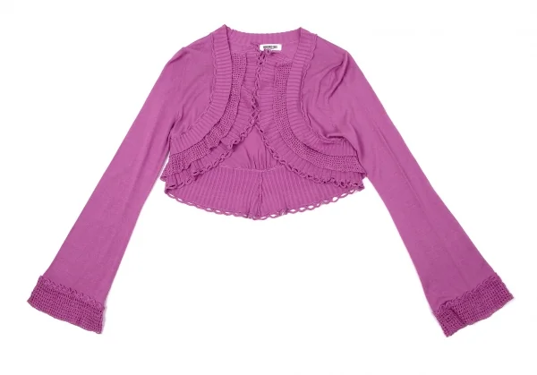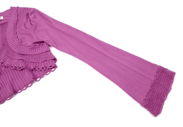 【SALE】ヒロコビスHIROKO BIS ニットレースフリルショートカーディガン ピンク9