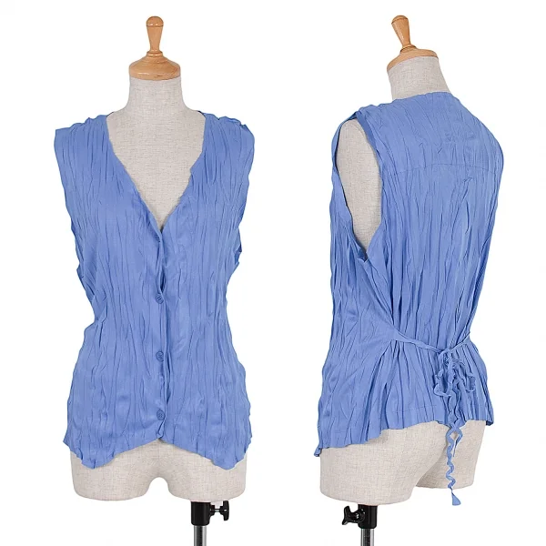 【最終値下げ】プリーツプリーズPLEATS PLEASE ポリシワ加工ジレ ブルー3