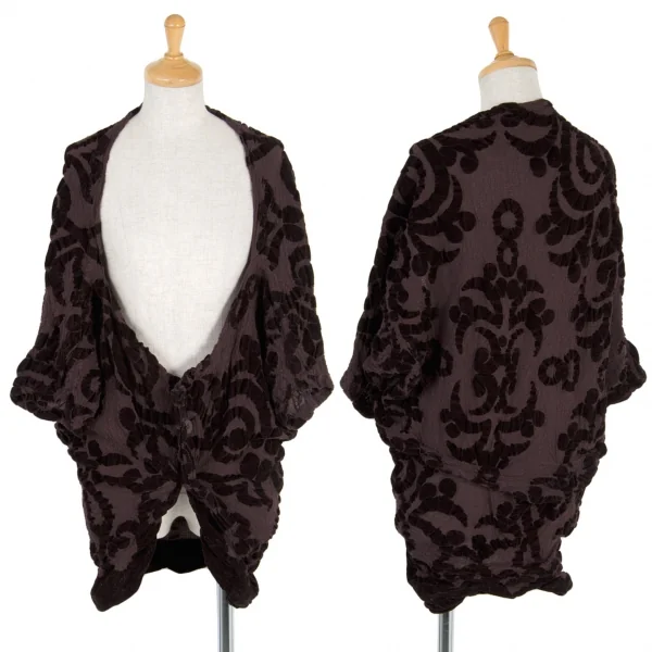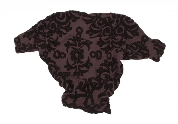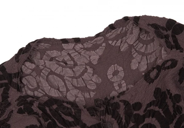 イッセイミヤケ ミーISSEY MIYAKE me シワ加工ベロアプリントトップス こげ茶M位