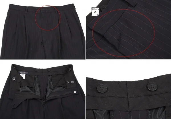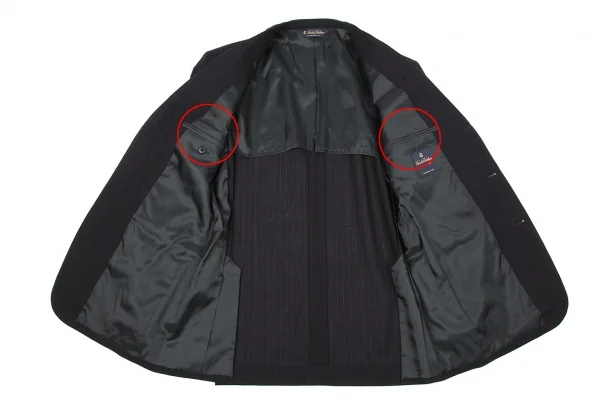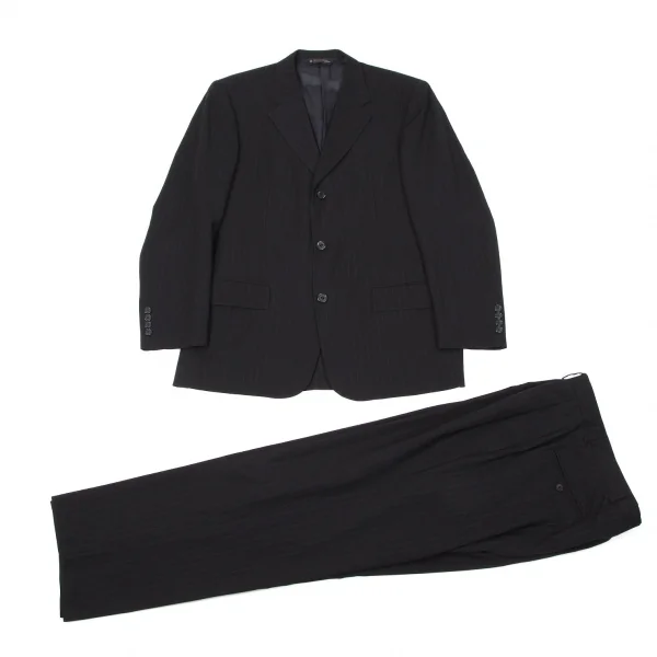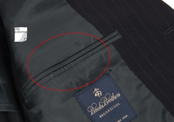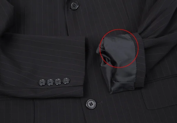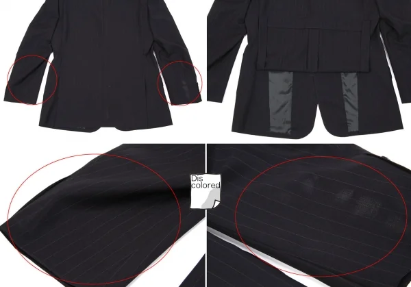 ジャケット 襟裏に薄汚れ、左袖裏に小穴あり。裏地ポケッチ口に汚れ、袖先に生地テカりあり。パンツ 前に生地テカりあり。(写真参照)その他に目立ったシミ、汚れ、ほつれ等なくいい状態です。クリーニング済み