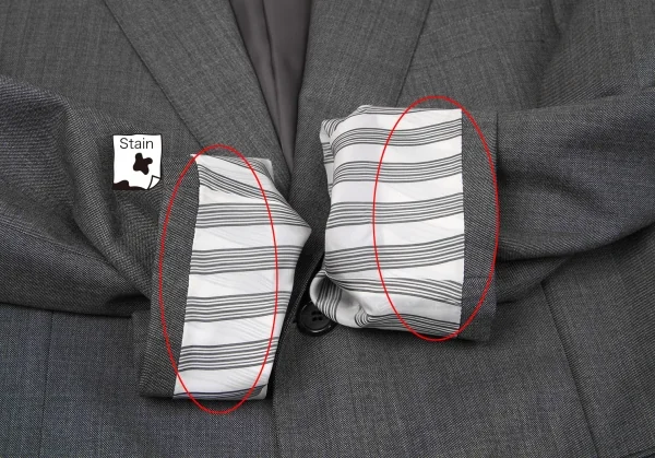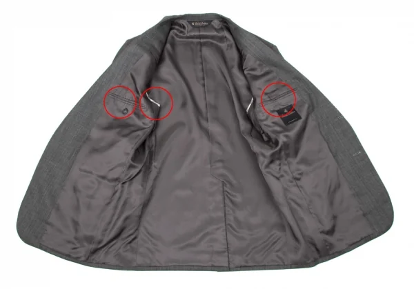 襟裏、袖裏に薄汚れあり。裏地ポケット口に汚れ、脇下に薄シミ、裾にシミあり。(写真参照)その他に目立ったシミ、汚れ、ほつれ等なくいい状態です。クリーニング済み