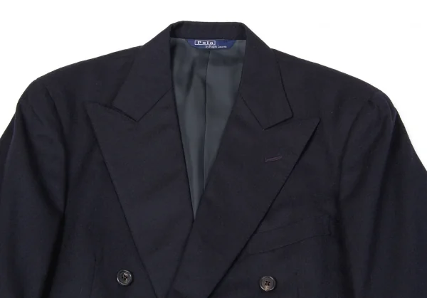 ポロラルフローレンPOLO RALPH LAUREN ウールフラノピークドラペルダブルセットアップスーツ 濃紺M位