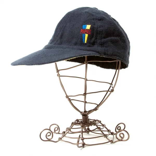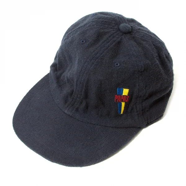 パパスPapas ロゴ刺繍コットンキャップ帽 紺黄L