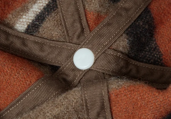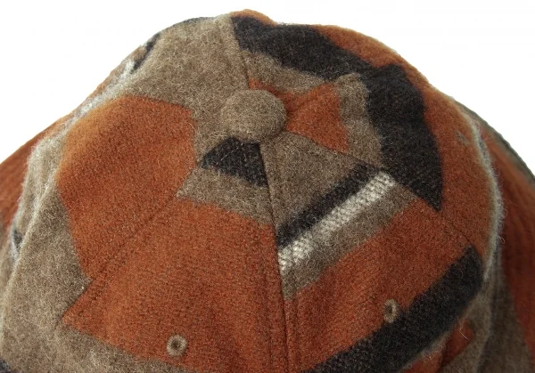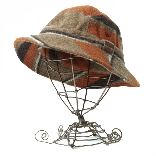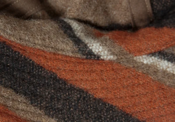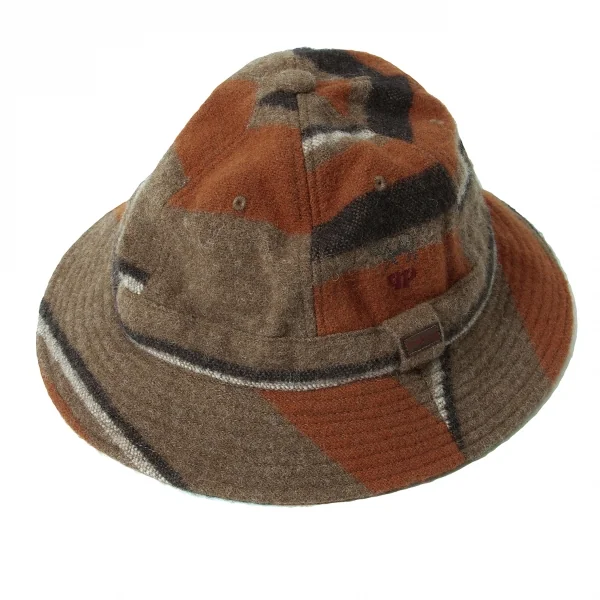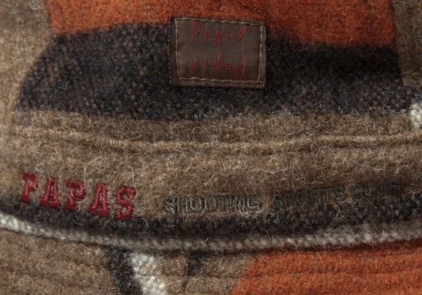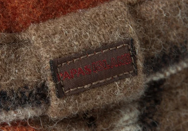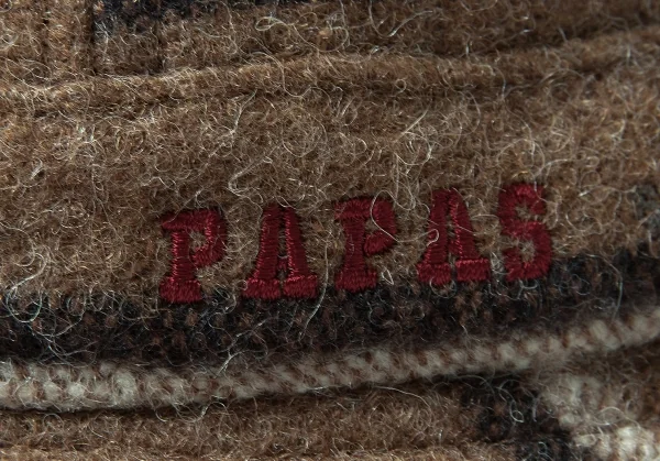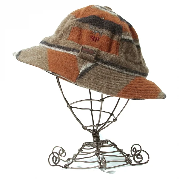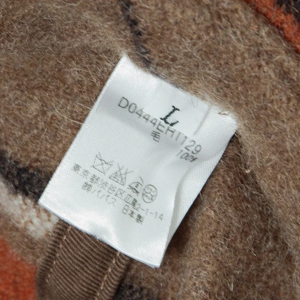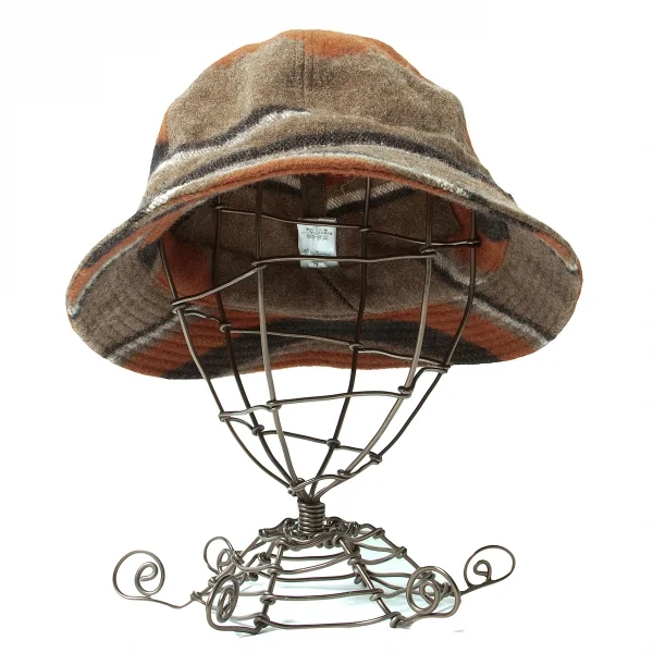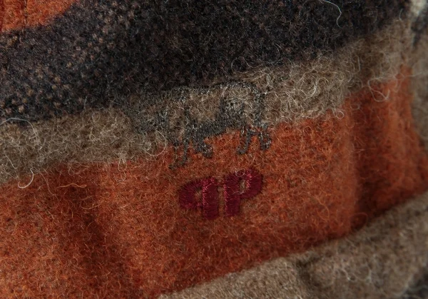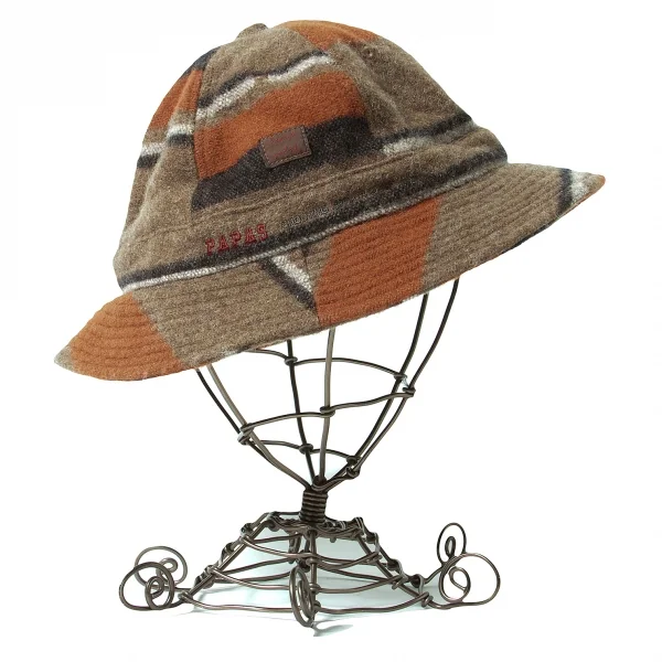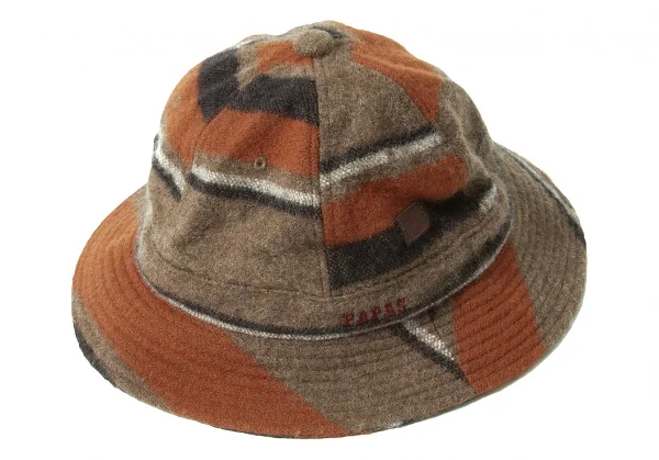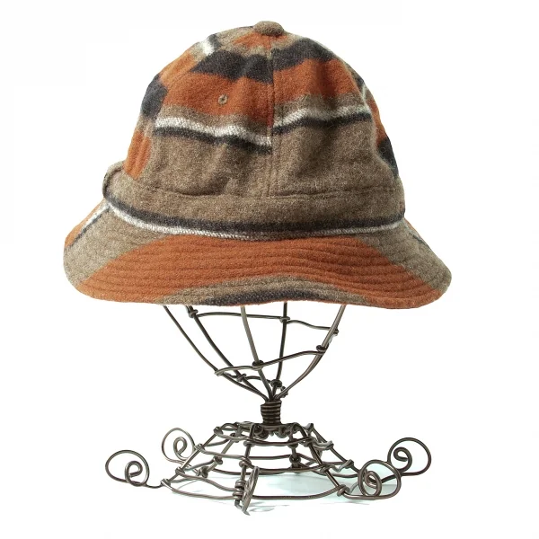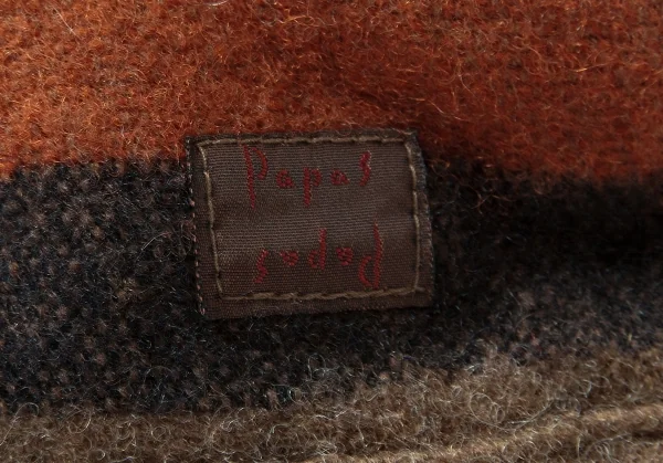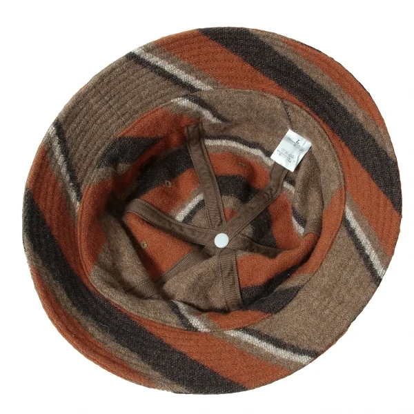 パパスPapas サイ刺繍ランダムボーダーウールクルーハット 茶オレンジ他L