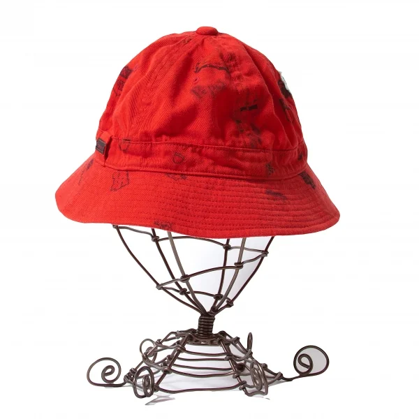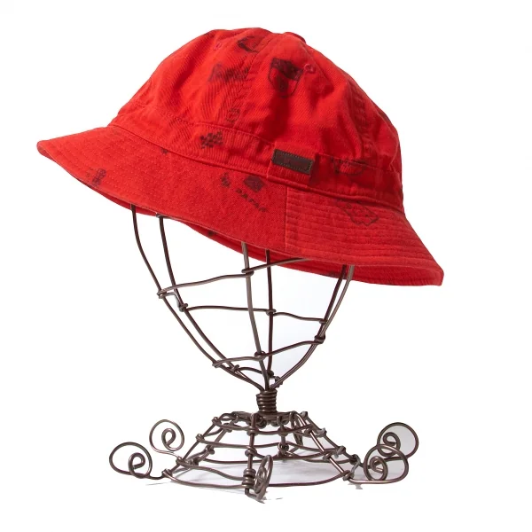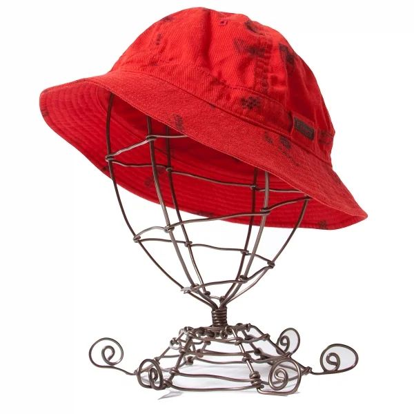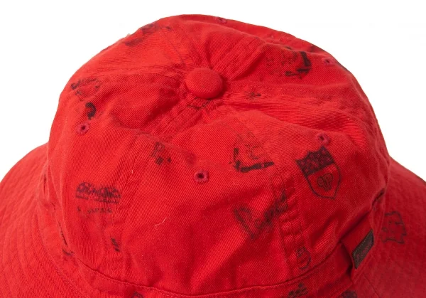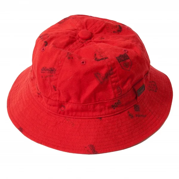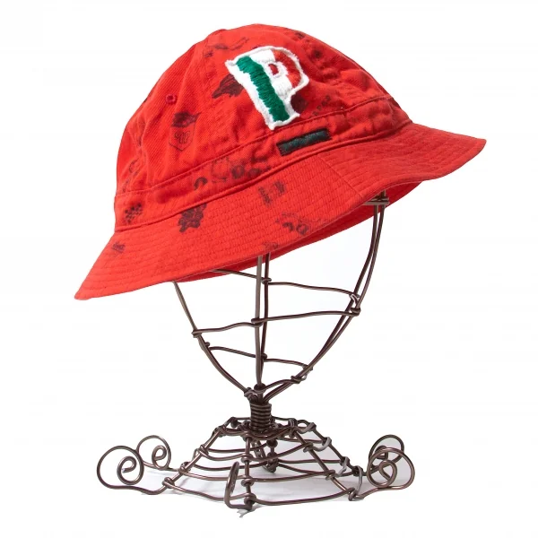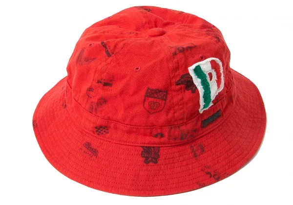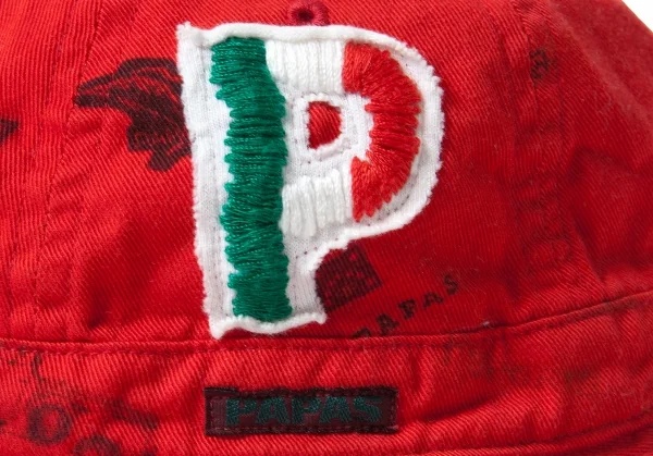 パパスPapas イタリアカラー刺繍コットンクルーハット 赤黒L