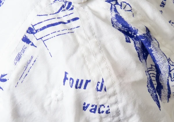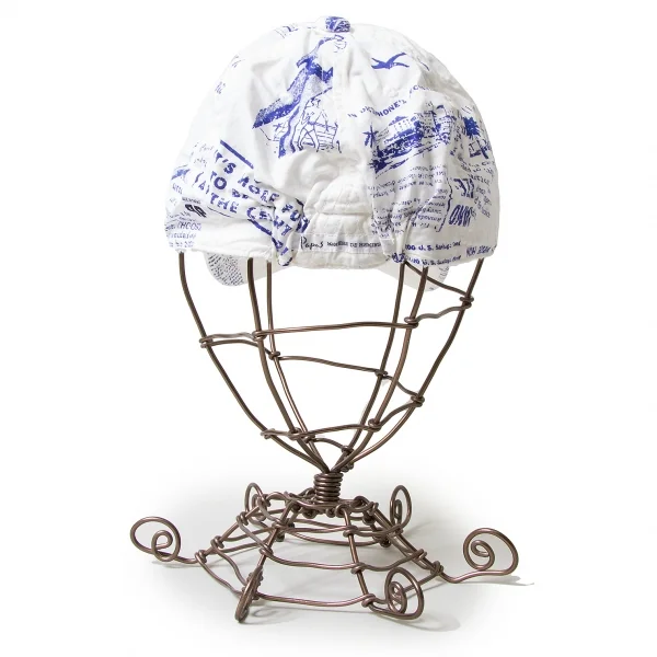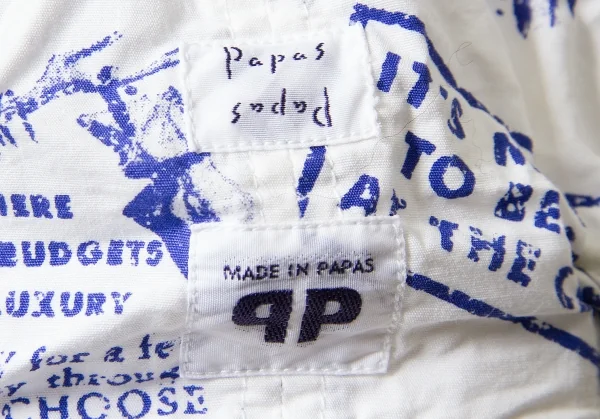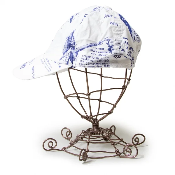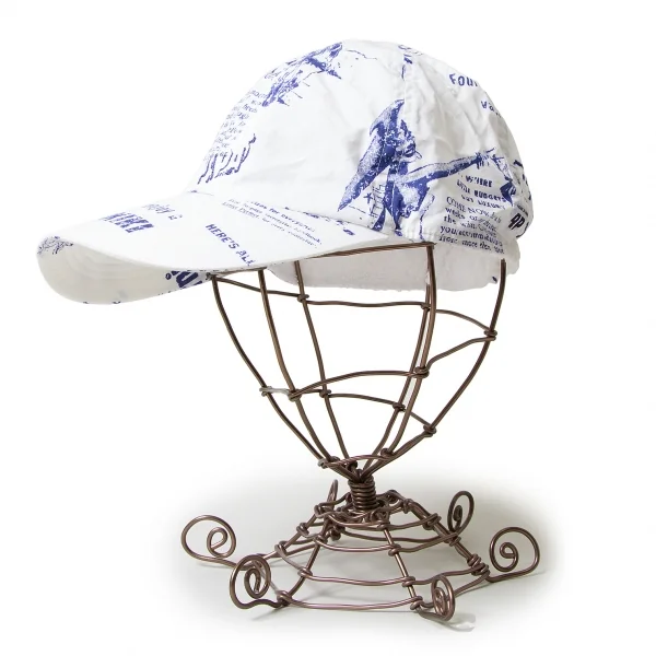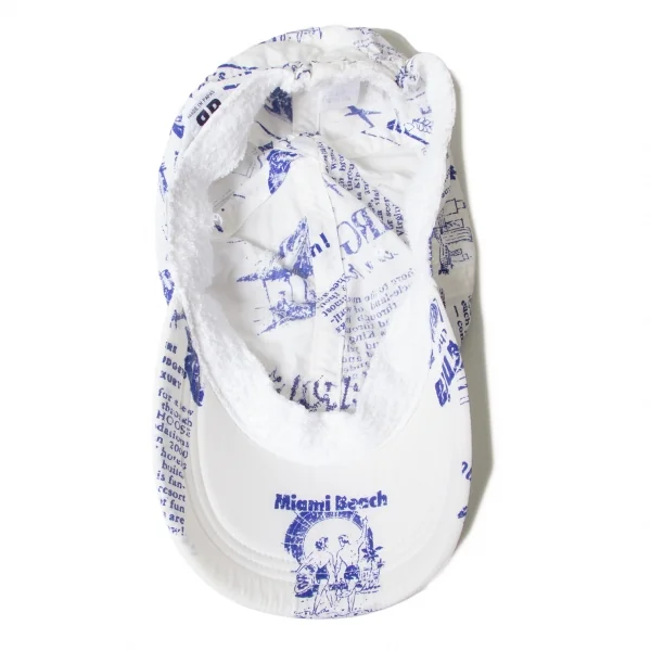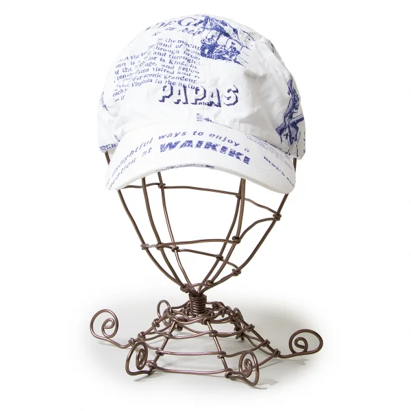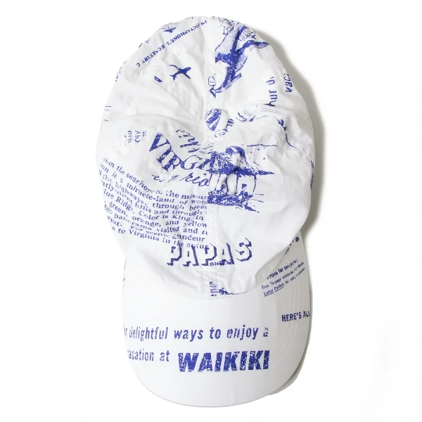 パパスPapas ビーチイラスト英字柄コットンキャップ帽 白青LL