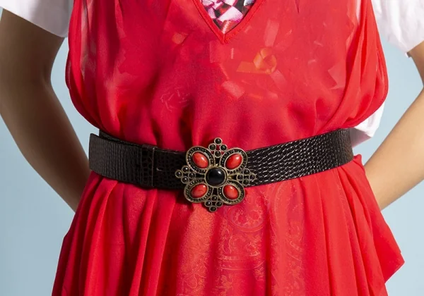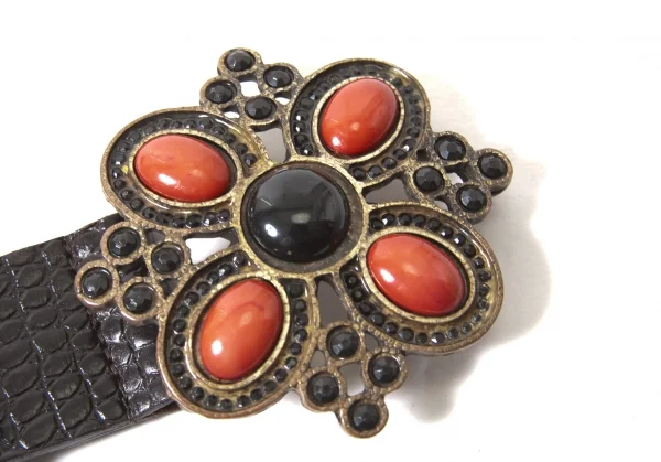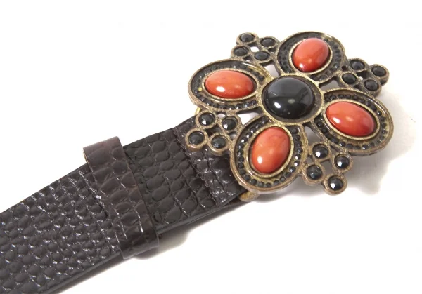 【SALE】ダナキャランDKNY ビジューバックルパイソン型押しレザーベルト 黒茶他