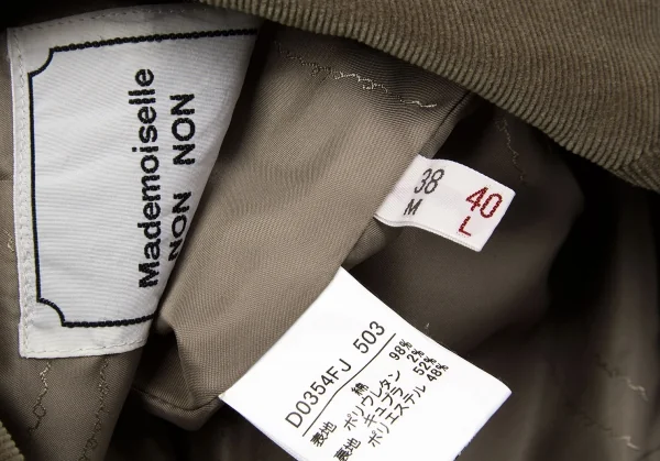 マドモアゼルノンノンMademoiselle NON NON コーデュロイノッチドラペル3Bジャケット ベージュM位