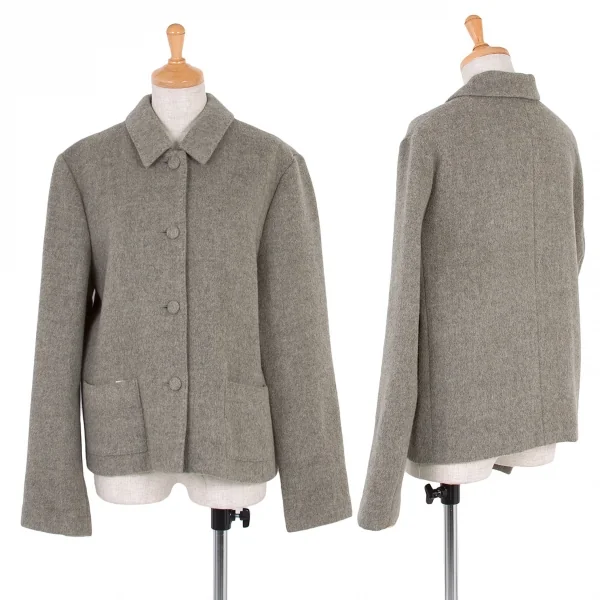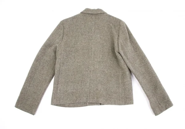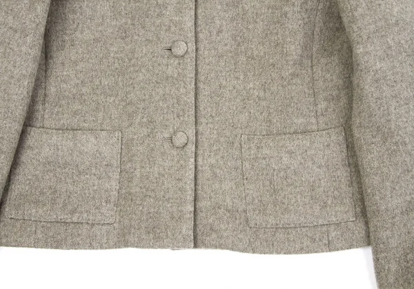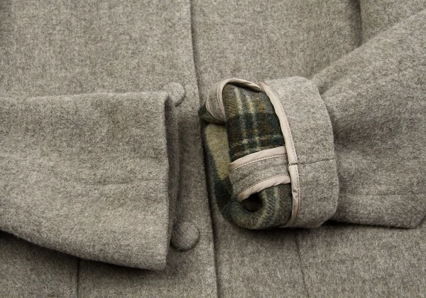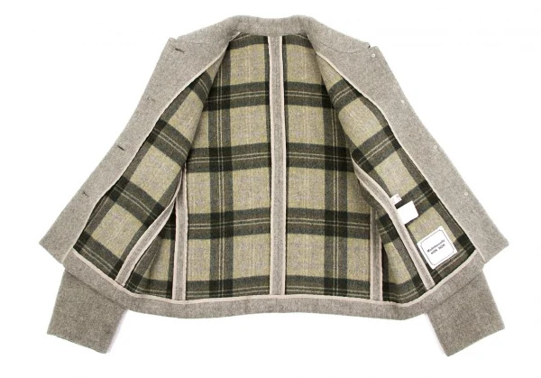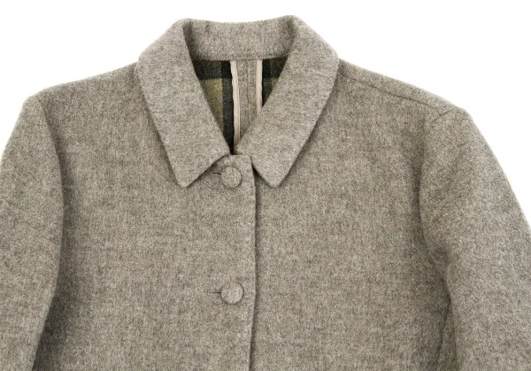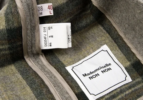 【SALE】マドモアゼルノンノンMademoiselle NON NON 裏チェックウールステンカラージャケット 杢モカベージュ緑他M位