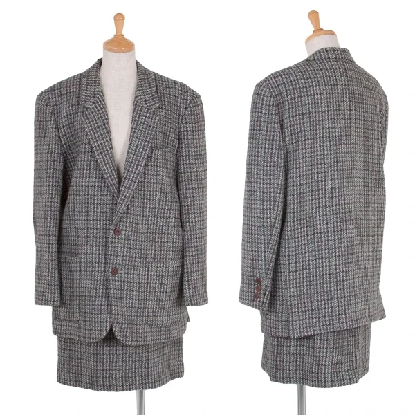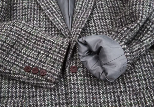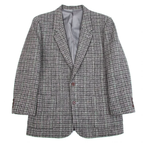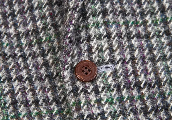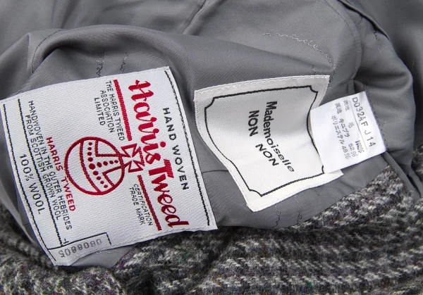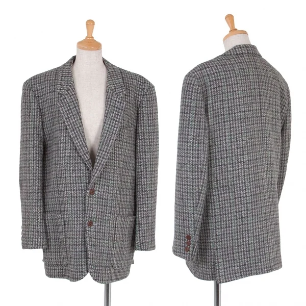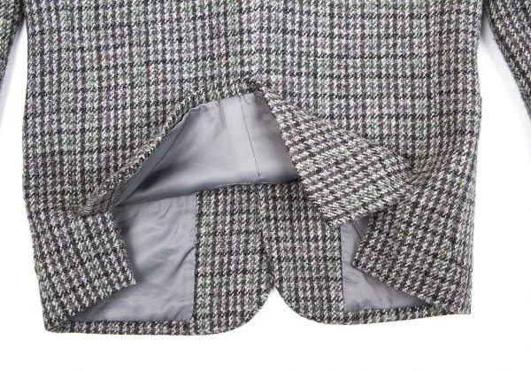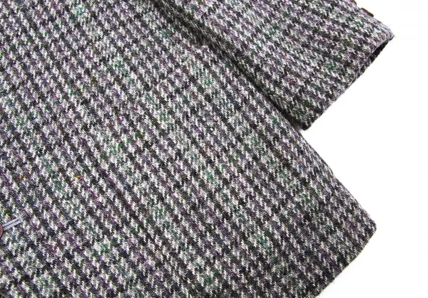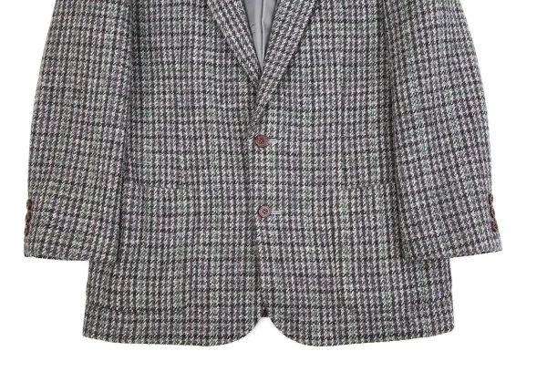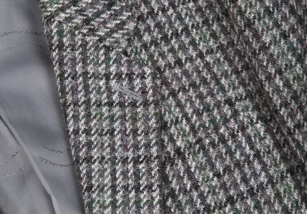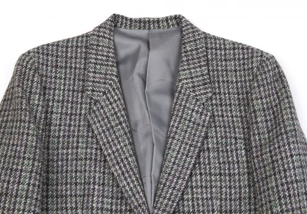 マドモアゼルノンノンMademoiselle NON NON ハリスツイードノッチドラペル2Bジャケット グレー緑紫M位
