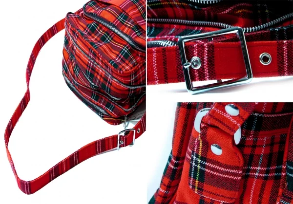 コムデギャルソンCOMME des GARCONS タータンチェックアクリルショルダーバッグ 赤黒他