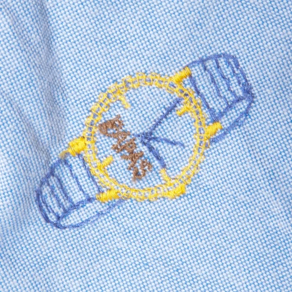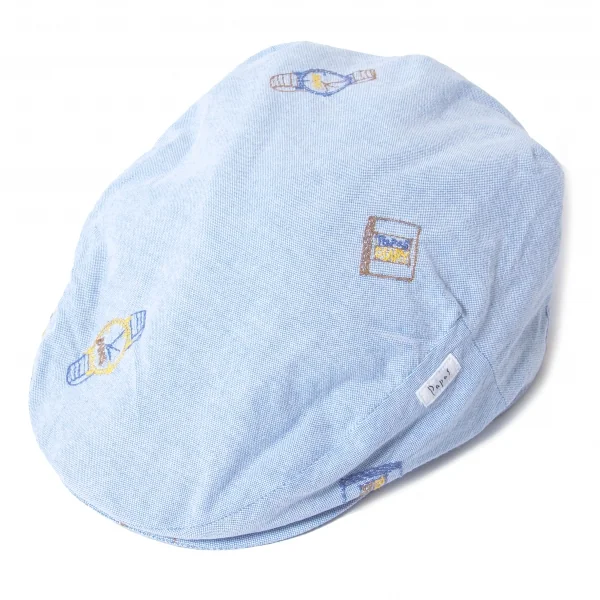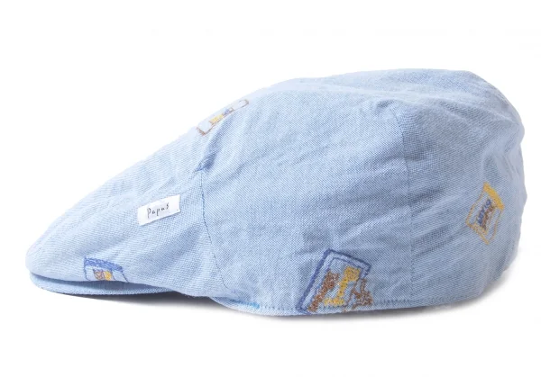 パパスPapas 腕時計刺繍コットンハンチング帽 水色黄LL