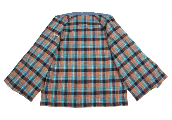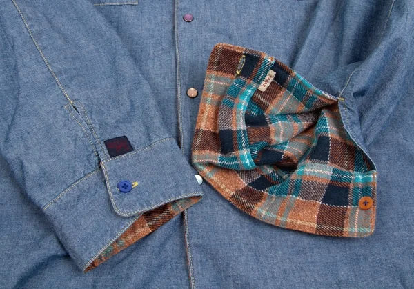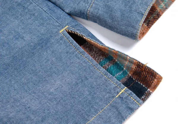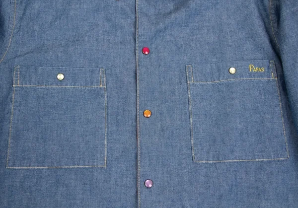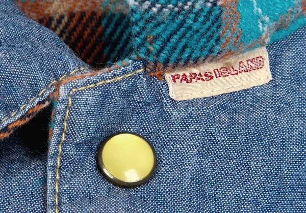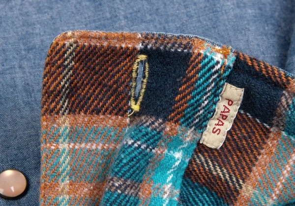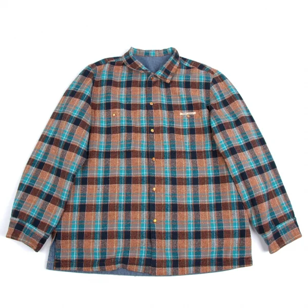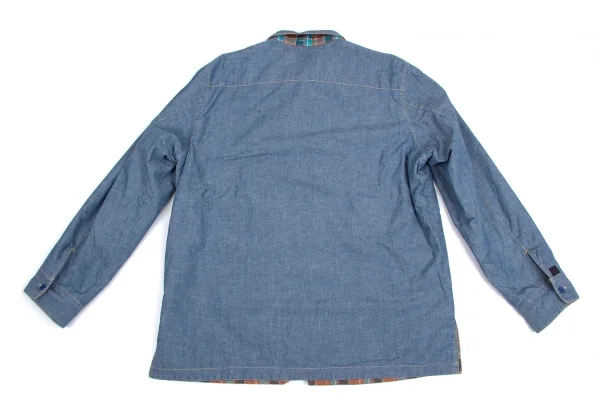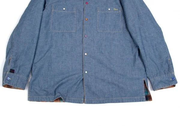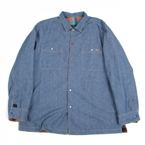パパスPapas チェックダンガリーリバーシブルシャツジャケット 52(LL) ブルーレンガ紺他52(LL)