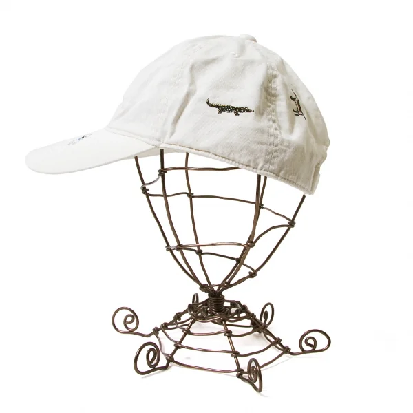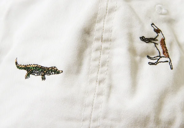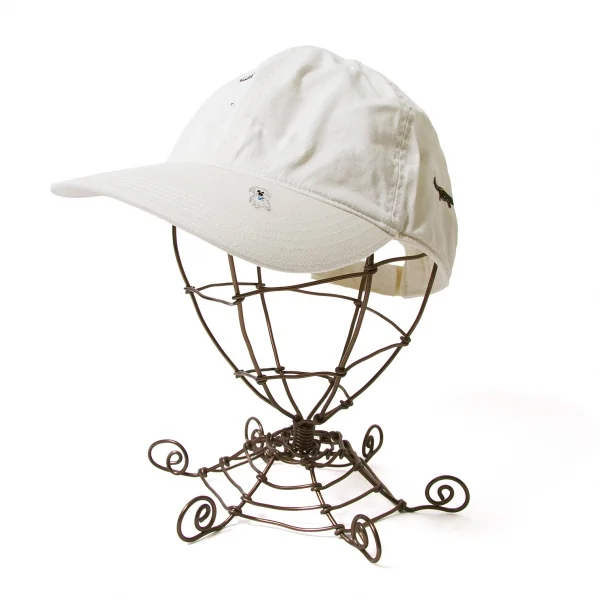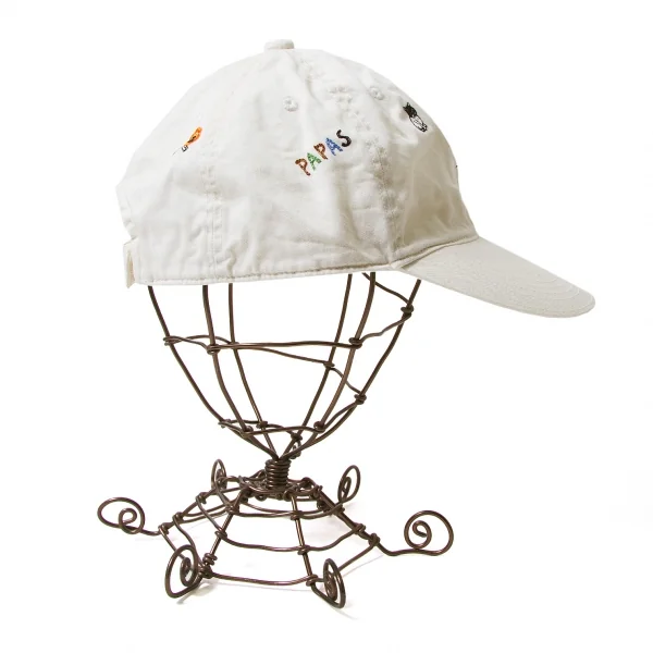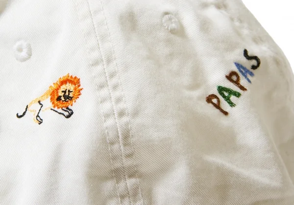 パパスプラスPapas+ 犬ライオンワニ刺繍コットンキャップ帽 白