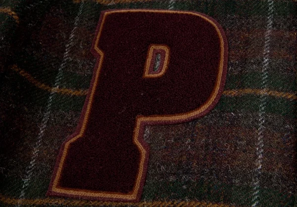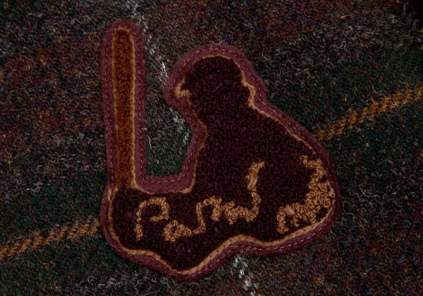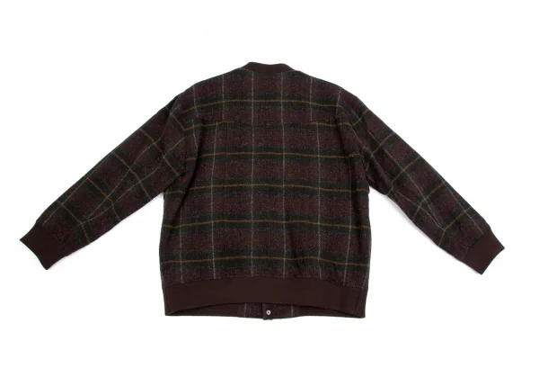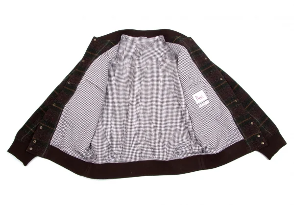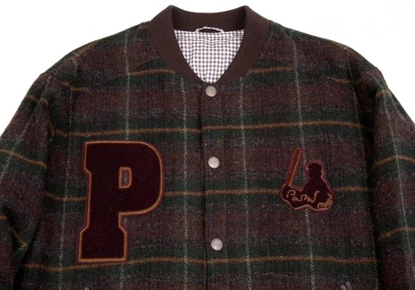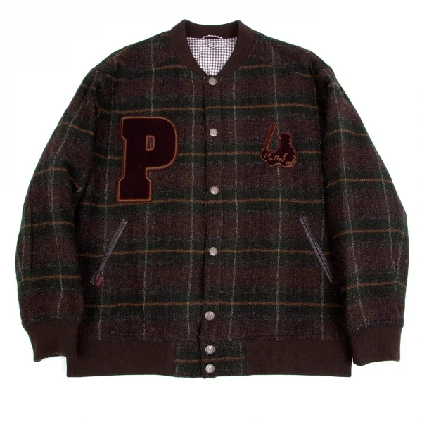 パパスPapas ウールチェック中綿スタジアムジャンパー カーキ茶LL