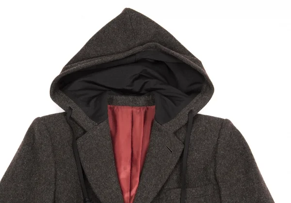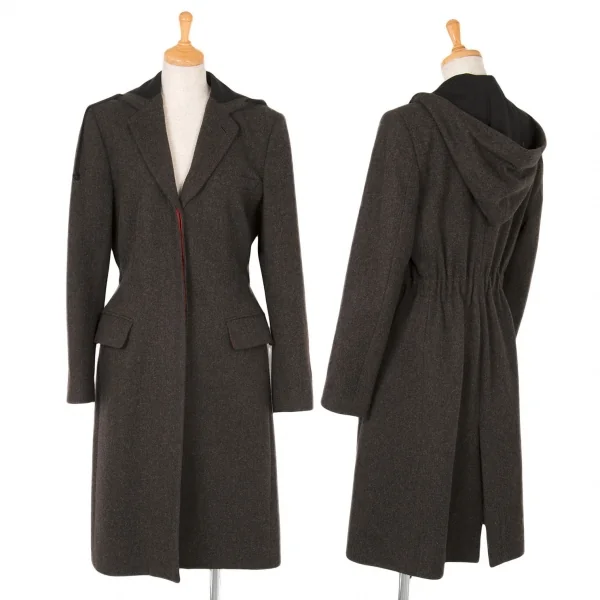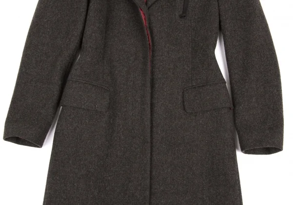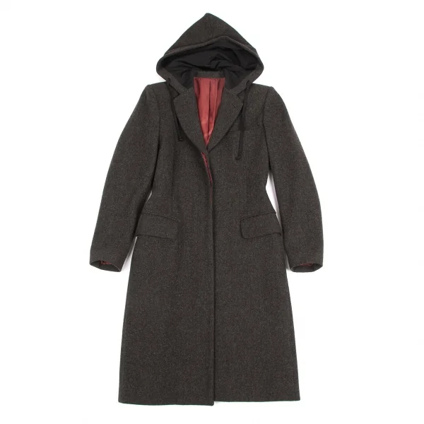 【SALE】ジャンポールゴルチエ クラシックJean Paul GAULTIER CLASSIQUE ウール混比翼フードロングコート 杢茶40