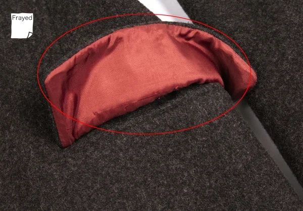 袖先に毛抜け、袖裏に薄汚れあり。ポケット フラップ裏に引っ掛けkあり。裏地に汚れあり。(写真参照)目立ったシミ、汚れ、ほつれ等なくいい状態です。クリーニング済み