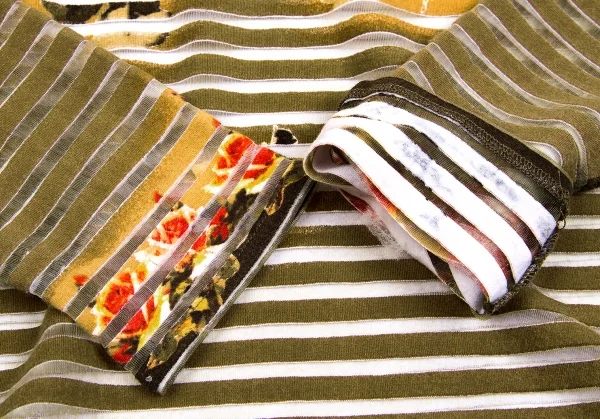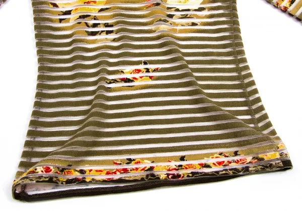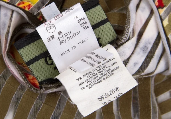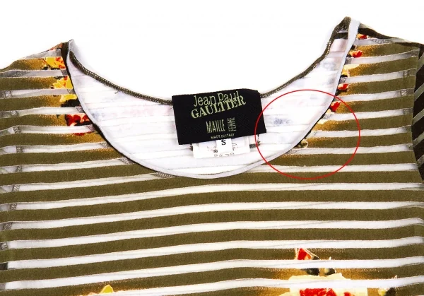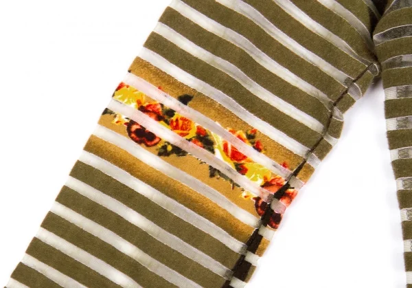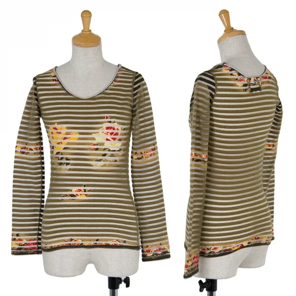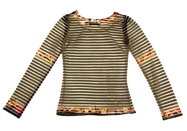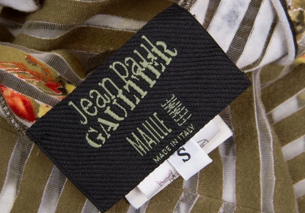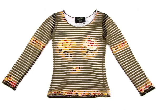 【最終値下げ】ジャンポールゴルチエ マイユファムJean Paul GAULTIER MAILLE FEMME 透けボーダープリントTシャツ カーキ他S