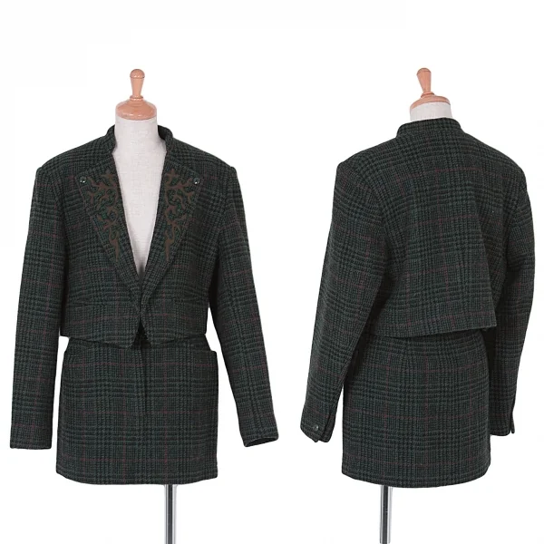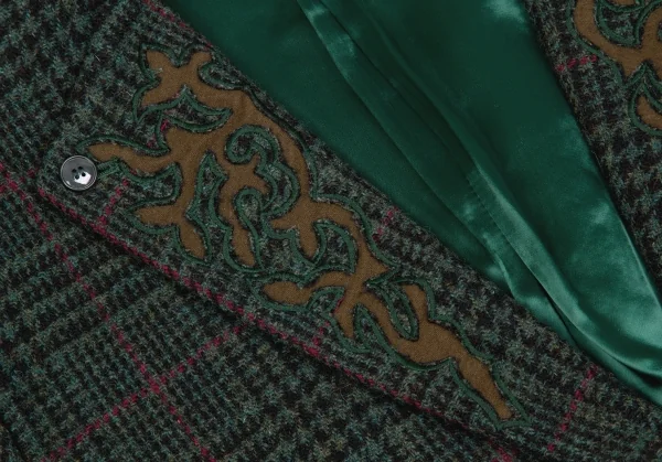 ケンゾーKENZO ウールナイロンチェックセットアップスーツ M 緑赤黒M