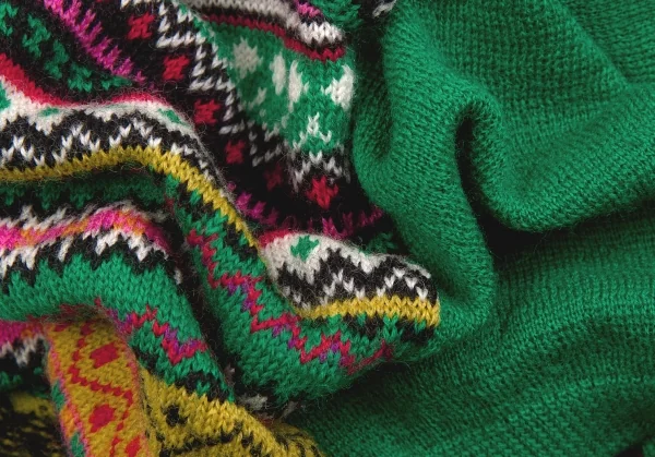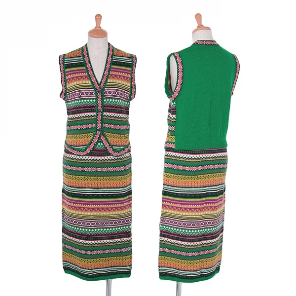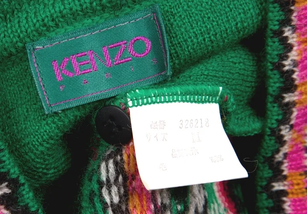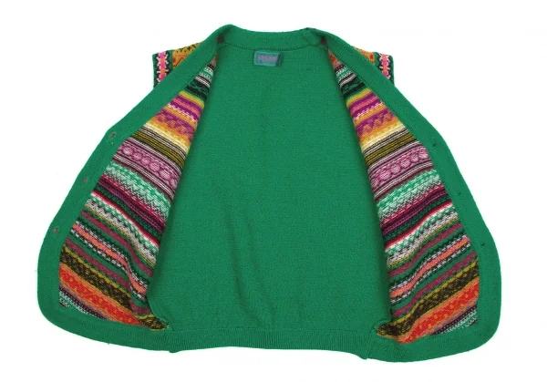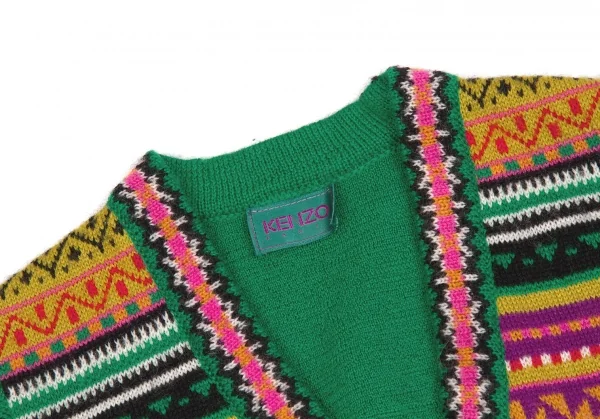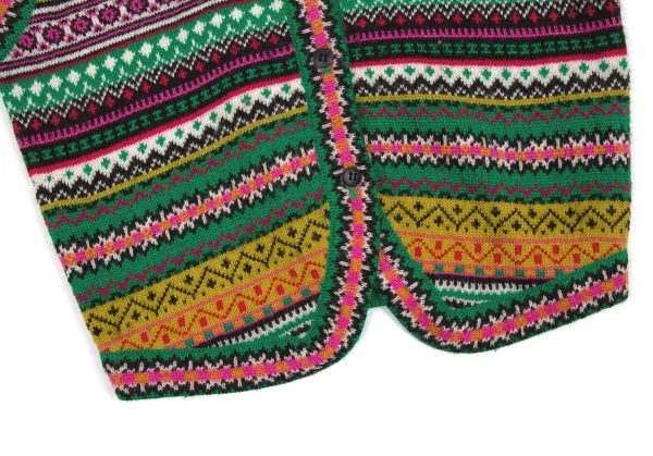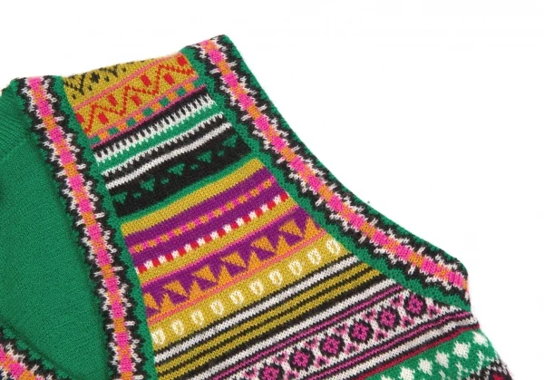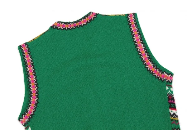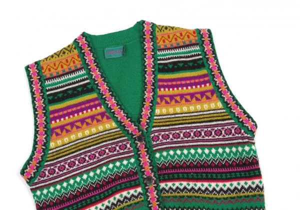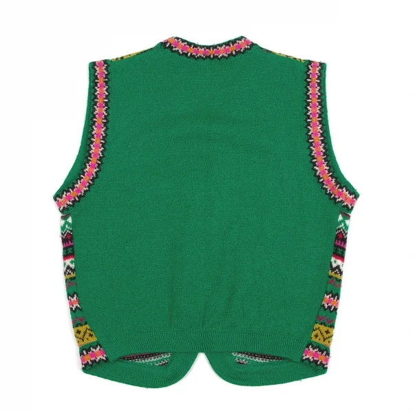 ケンゾーKENZO ネイティブ柄切替ニットベスト M 緑マルチM