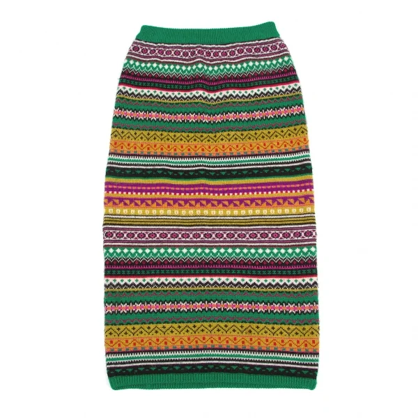 ケンゾーKENZO ネイティブ柄ニットスカート M 緑マルチM