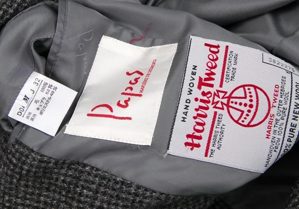 パパスPapas ハリスツィードチェックジャケット グレーM
