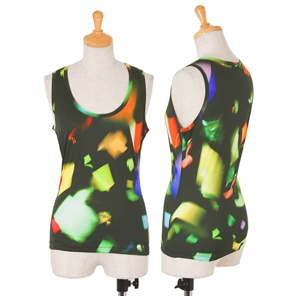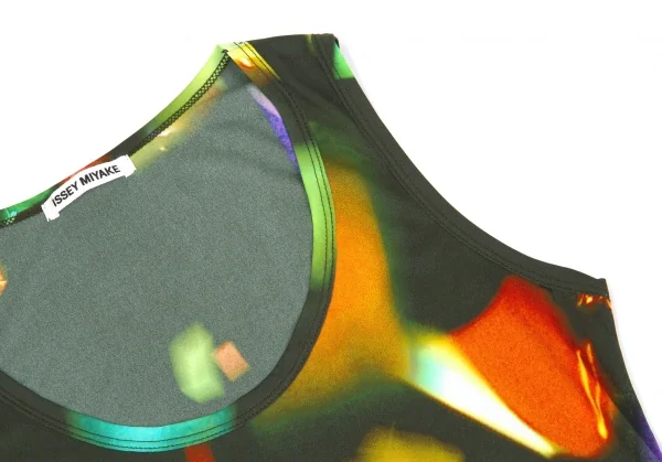 【最終値下げ】イッセイミヤケISSEY MIYAKE プリントノースリーブ カーキ黄マルチ2