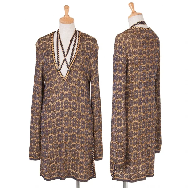 クリスチャンラクロアChristian Lacroix Vネックニットワンピース カラシ紺M位
