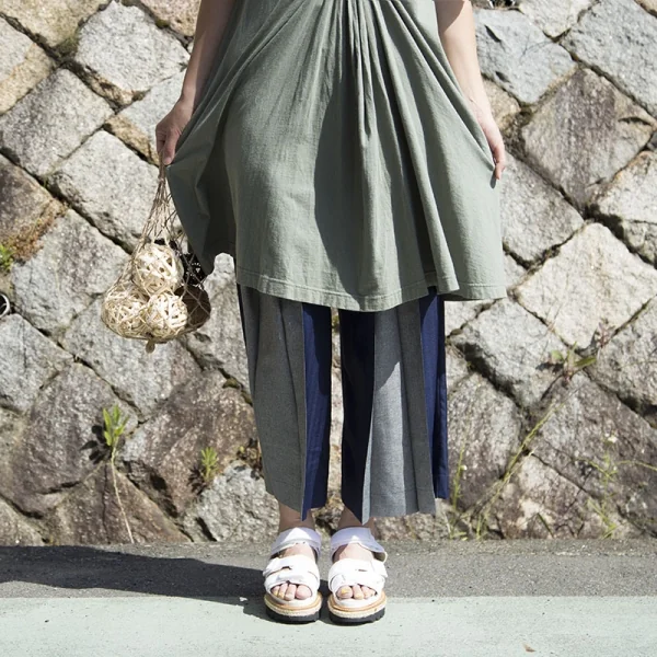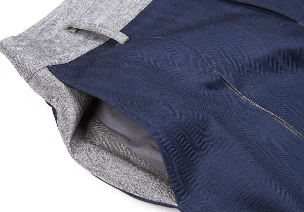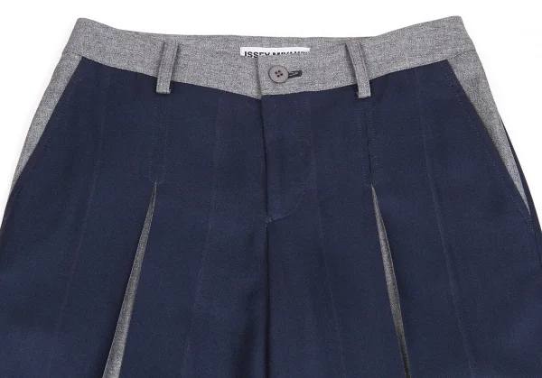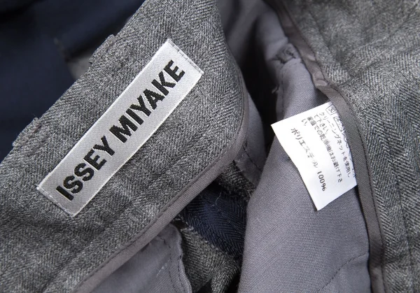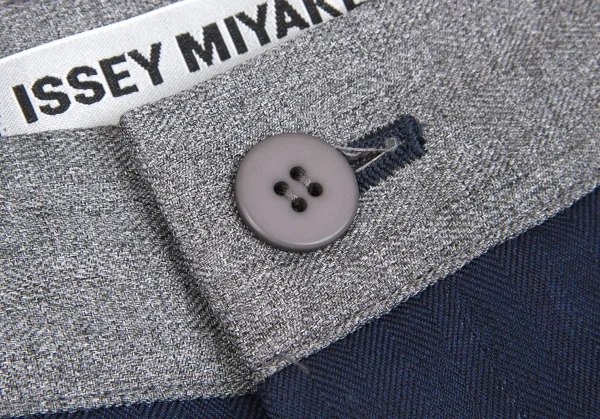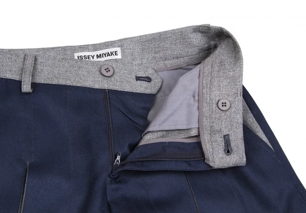 【SALE】イッセイミヤケISSEY MIYAKE ボックスプリーツバイカラーポリパンツ 紺グレー1