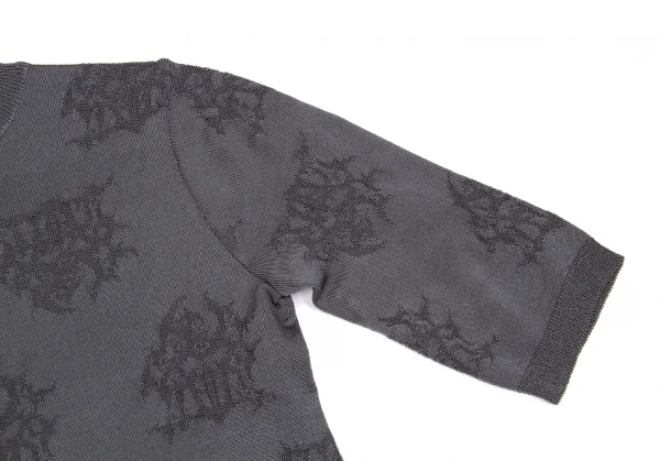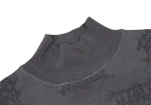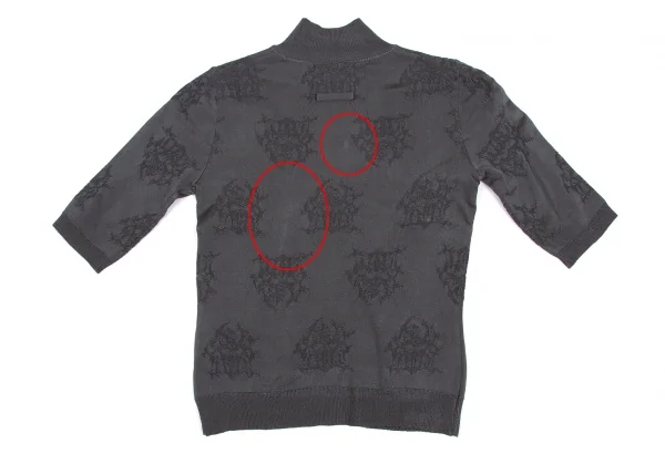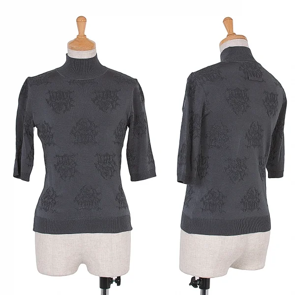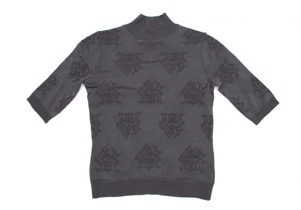 【最終値下げ】ジャンポールゴルチエ ファムJean Paul GAULTIER FEMME トライバルジャガードハイネック半袖ニット 濃グレー40