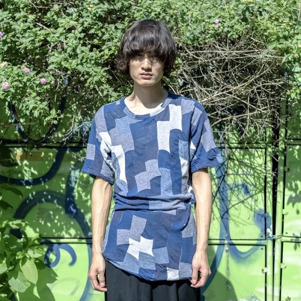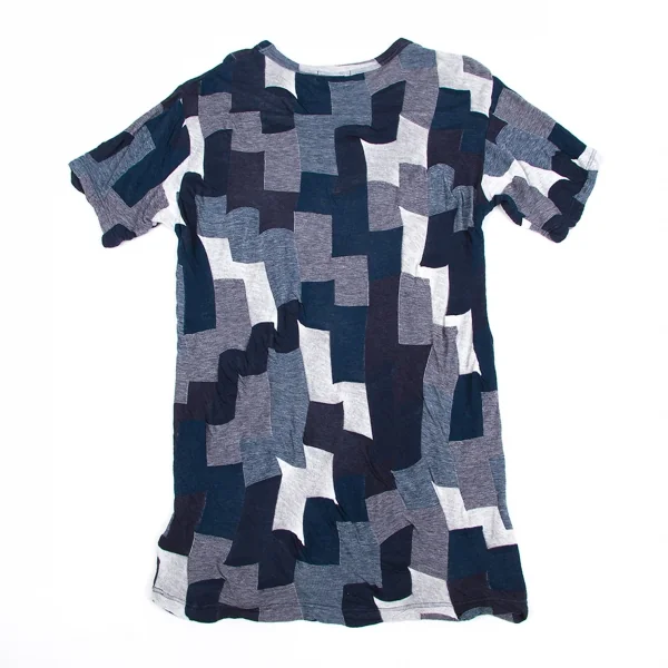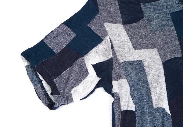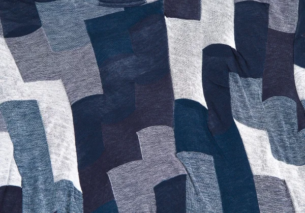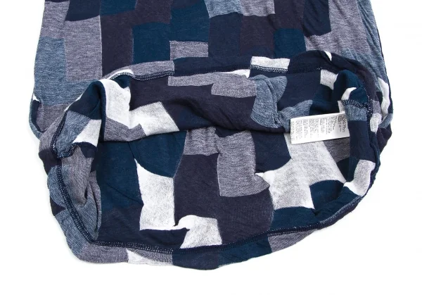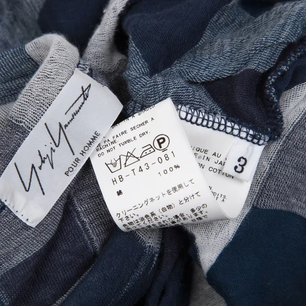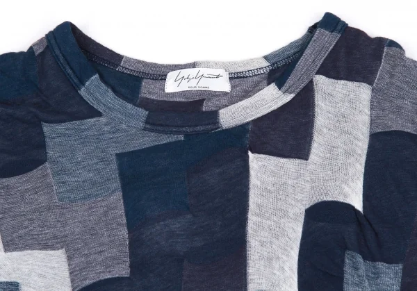 【SALE】ヨウジヤマモト プールオムYohji Yamamoto POUR HOMME コットン幾何学柄ロング丈半袖Tシャツ 青紺他3