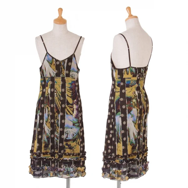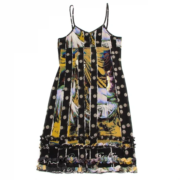 【SALE】ジャンポールゴルチエJean Paul GAULTIER プリントパワーネットキャミワンピース 黒マルチ40