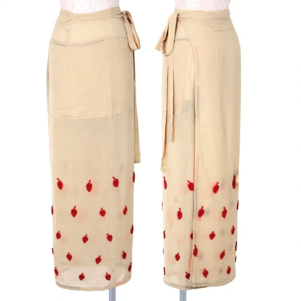 ジャンポールゴルチエファムJean Paul GAULTIER FEMME ポリシースルービーズラップスカート ベージュワイン40