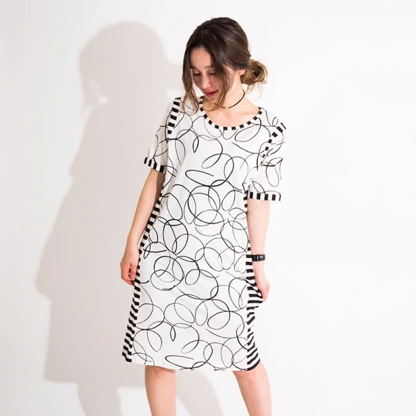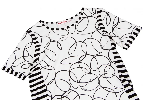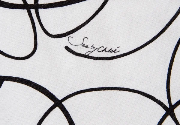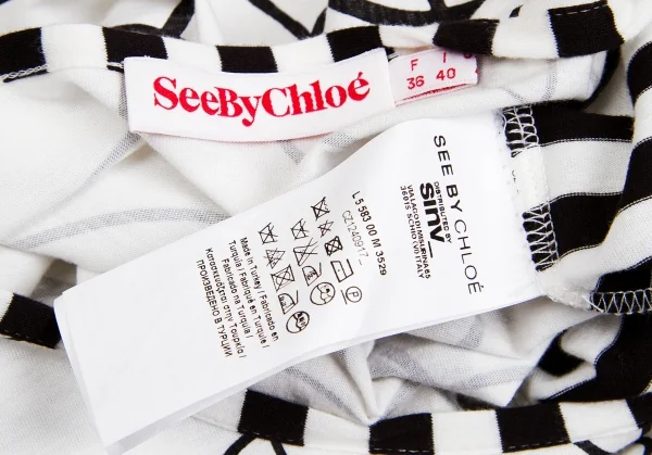 【SALE】シーバイクロエSEE BY CHLOE ボーダー切替手書きサークル柄Tシャツワンピース 白黒36