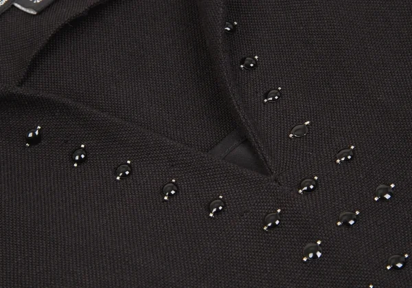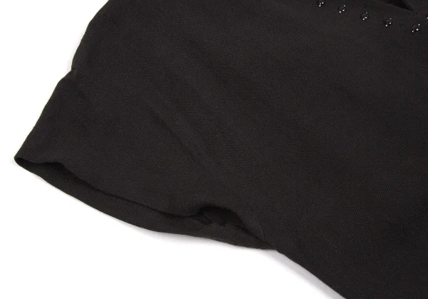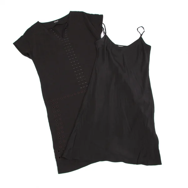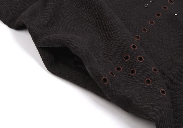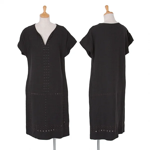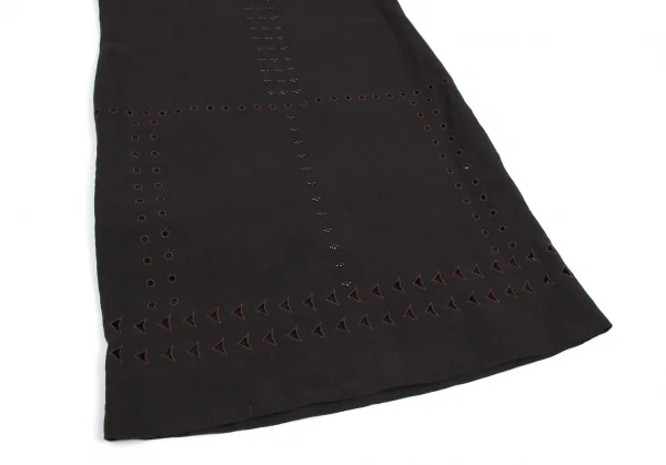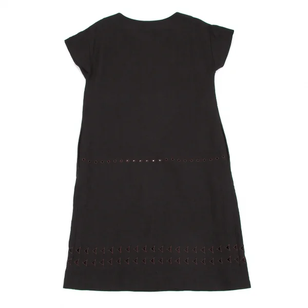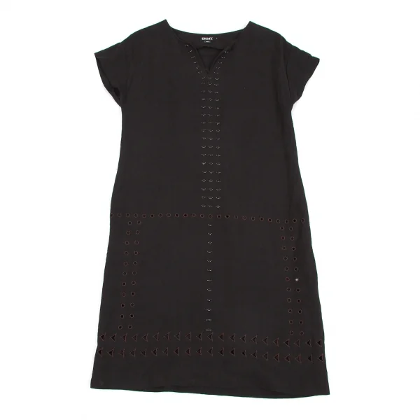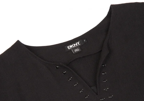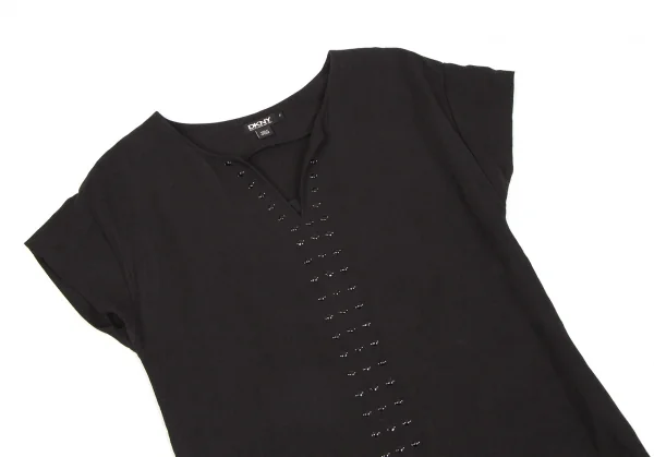 【最終値下げ】ダナキャランDKNY ビーズ装飾リネンレーヨンフレンチスリーブワンピース 黒茶P