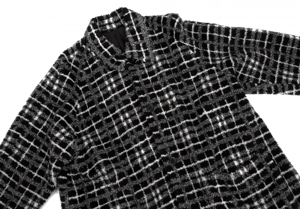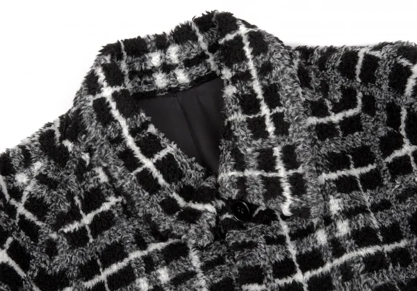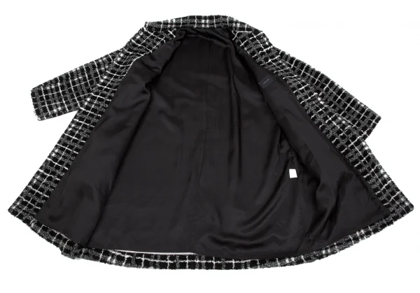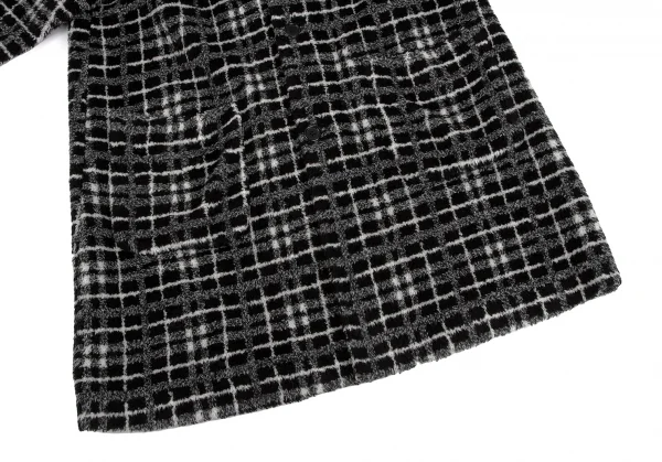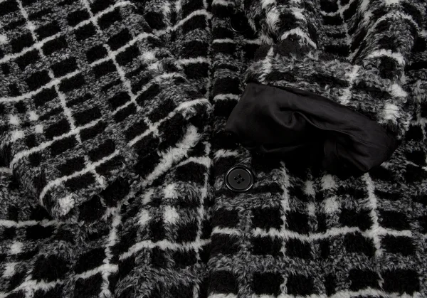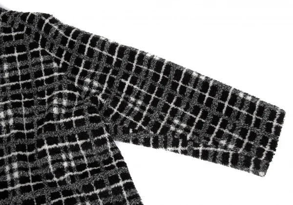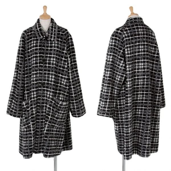 【SALE】プルドゥpour deux アクリルチェックロングコート 黒白M