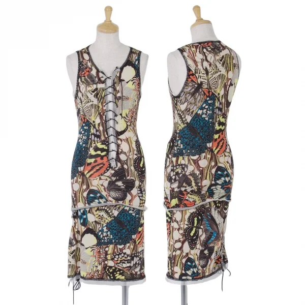 ジャンポールゴルチエ ファムJean Paul GAULTIER FEMME バタフライプリントレースアップスカート 黒マルチ40