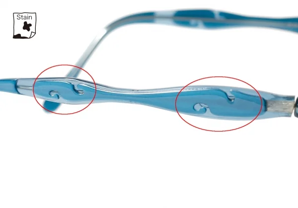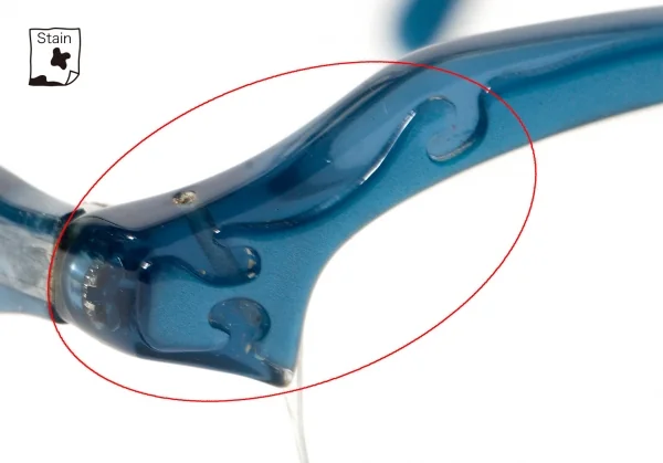 新品のお品になりますが、フレームに汚れがあります(画像参照)。鼻パッドなし。 その他目立ったキズ無く綺麗な状態です。 お客様一人一人の視力、骨格、鼻幅、耳の高さが違います。このような理由からオンラインショップでの度付きレンズ販売はしておりません。 お手数をおかけしますが、度入りレンズはお近くの眼鏡店等でお買い求めください。 他眼鏡店にてレンズの入れ替え、調整等に生じた不具合、破損については一切の責任を負いかねますので予めご了承下さい。