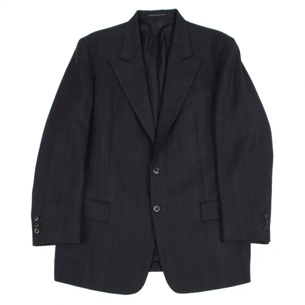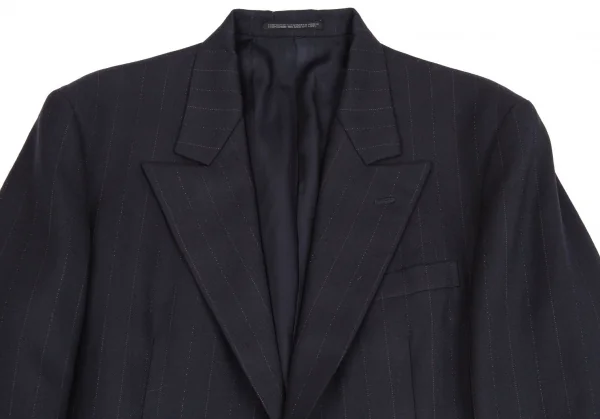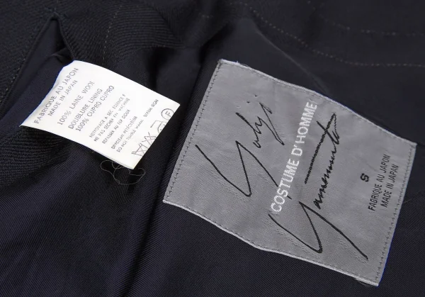 【SALE】ヨウジヤマモト コスチュームドオムYohji Yamamoto COTUME D'HOMME ストライプピークドラペルダブルジャケット 紺S