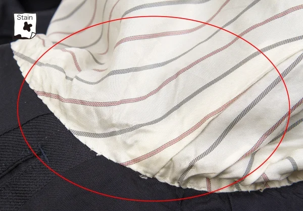 袖裏に汚れ、左袖に引っ掛けがあります(画像参照)。その他目立ったシミ、汚れ、ほつれ等なくいい状態です。クリーニング済み