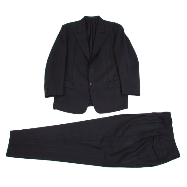 【SALE】ヨウジヤマモト コスチュームドオムYohji Yamamoto COTUME D'HOMME ウールストライプセットアップスーツ 紺S