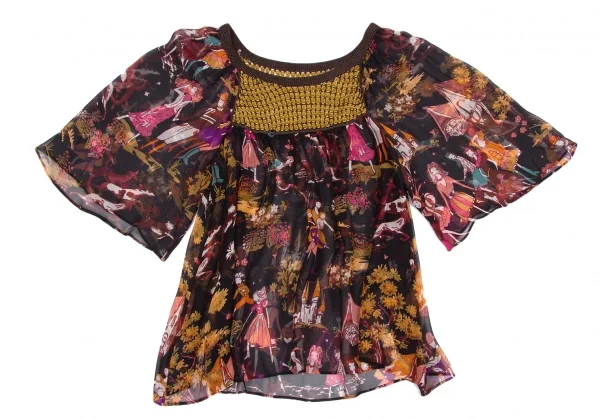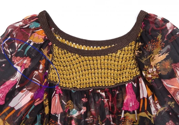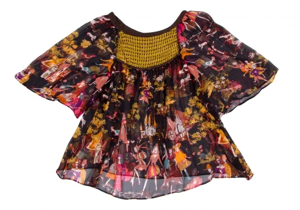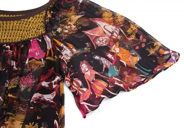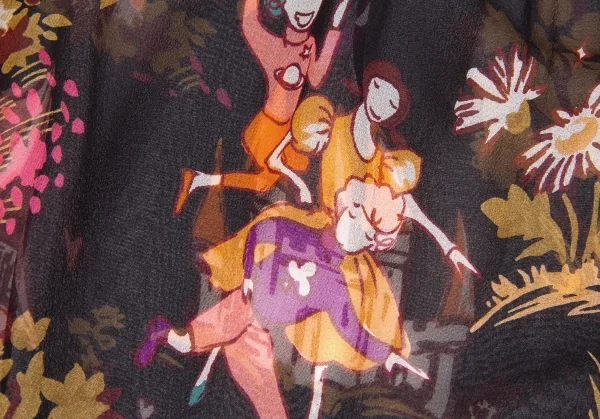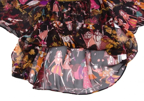 ツモリチサトTSUMORI CHISATO メルヘンプリントシルクシフォンチュニック 黒マルチ2
