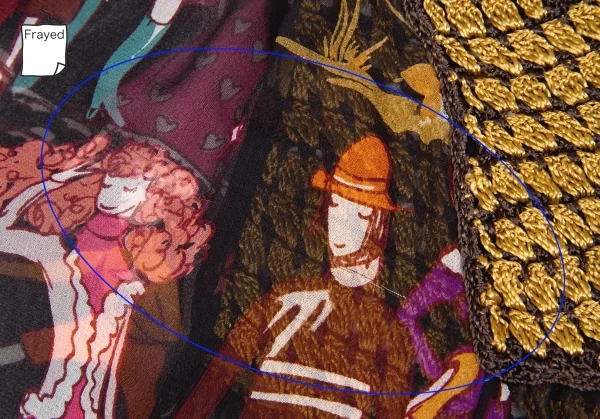 糸引き箇所あり(写真参照)。その他に目立ったシミ、汚れ、ほつれ等なくいい状態です。クリーニング済み