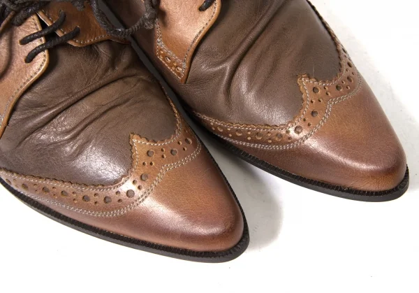 【SALE】オウバニスターAU BANNISTER ポインテッドトゥウイングチップシューズ 茶24.5位