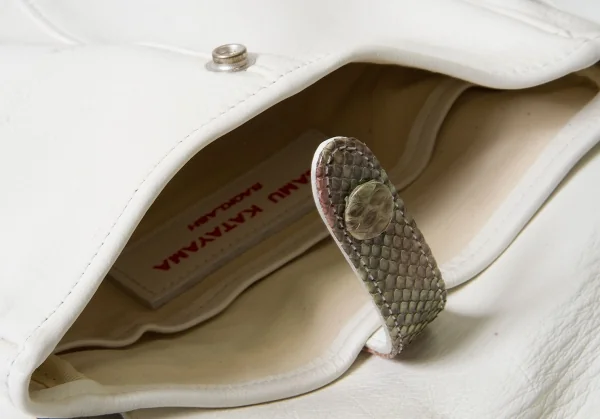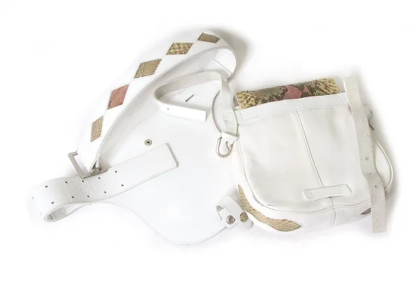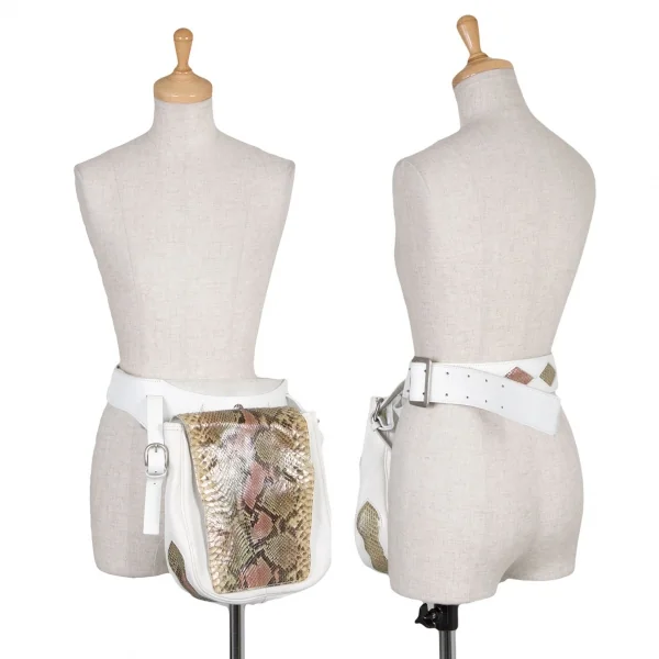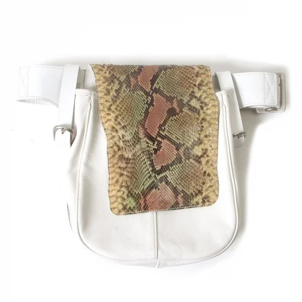 【最終値下げ】イサムカタヤマバックラッシュISAMU KATAYAMA BACKLASH パイソンレザー切替フラップウエストホルダーバッグ 白