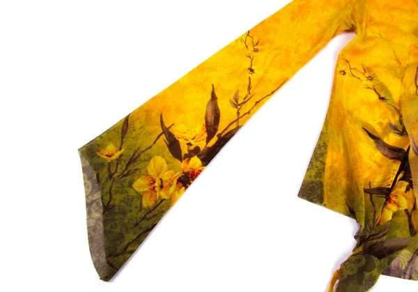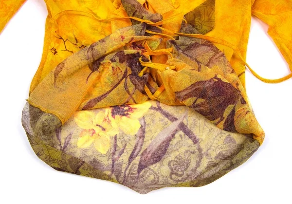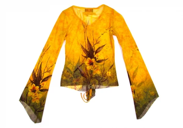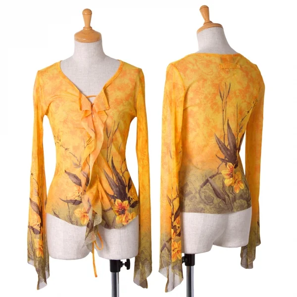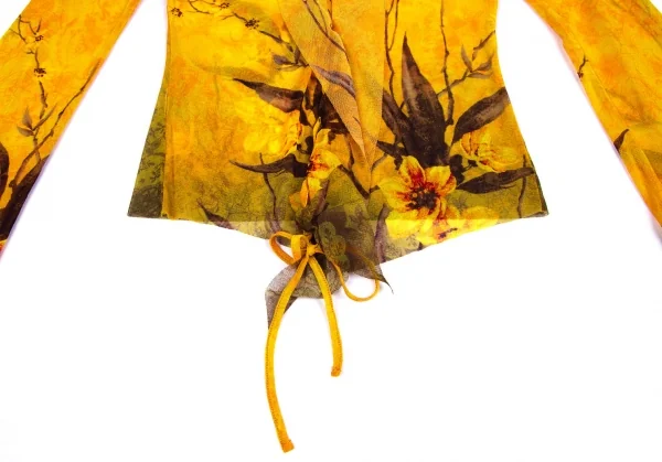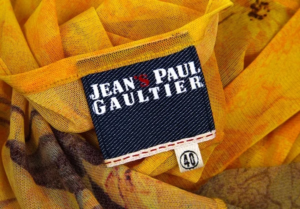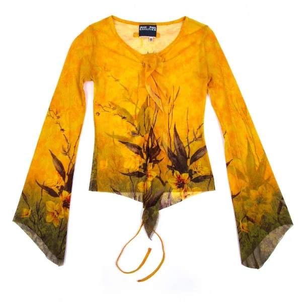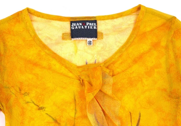 ジーンズポールゴルチエ Jean's Paul GAULTIER フラワープリントレースアップパワーネットトップス カラシ40
