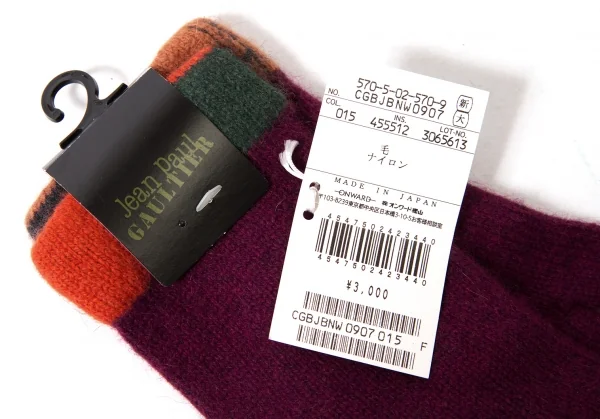 新品!ジャンポールゴルチエJean Paul GAULTIER ウールナイロンニットグローブ ワインF