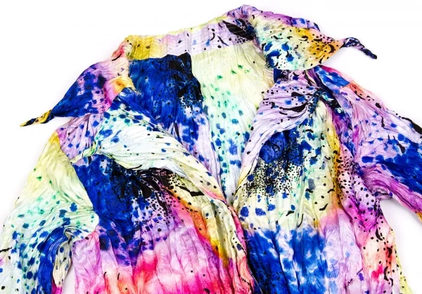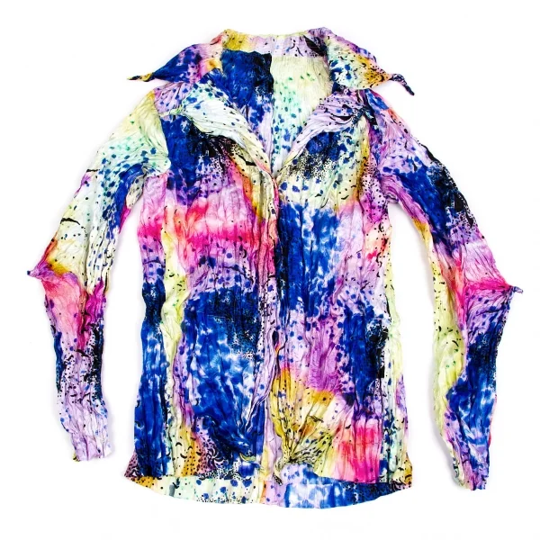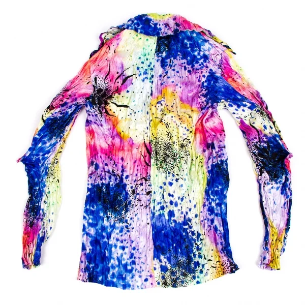 イッセイミヤケ フェットISSEY MIYAKE FETE シワ加工カラフルプリントシャツジャケット 青マルチ2
