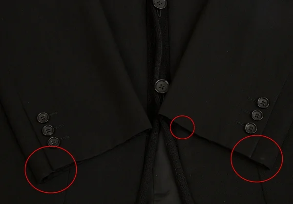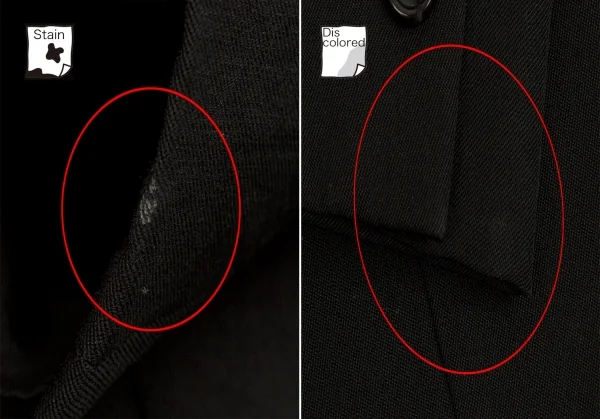ジャケット:袖口・袖裏にテカリ、襟裏・左袖口に汚れがあります(画像参照)。パンツ:裾にテカリがあります(写真参照)。その他目立ったシミ、汚れ、ほつれ等なくいい状態です。クリーニング済み