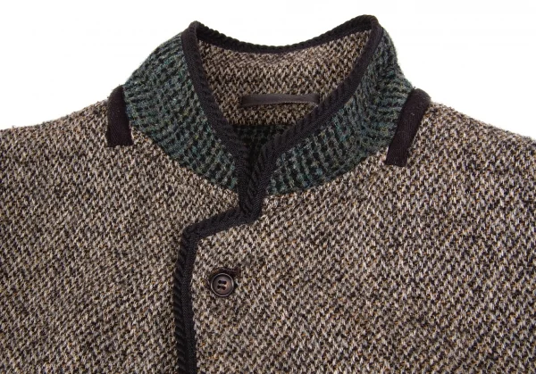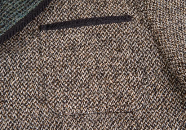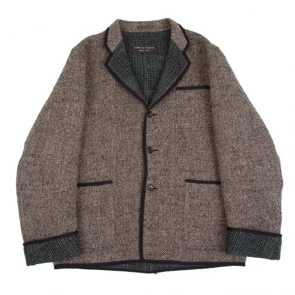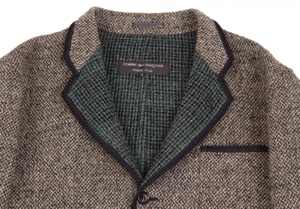 コムデギャルソン オムプリュスCOMME des GARCONS HOMME PLUS パイピングウールツイードジャケット ブラウン青系M